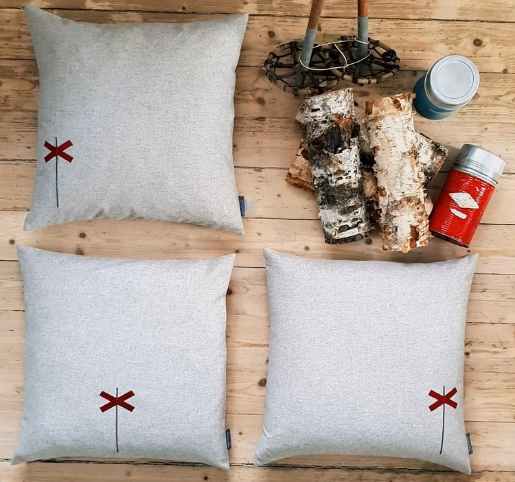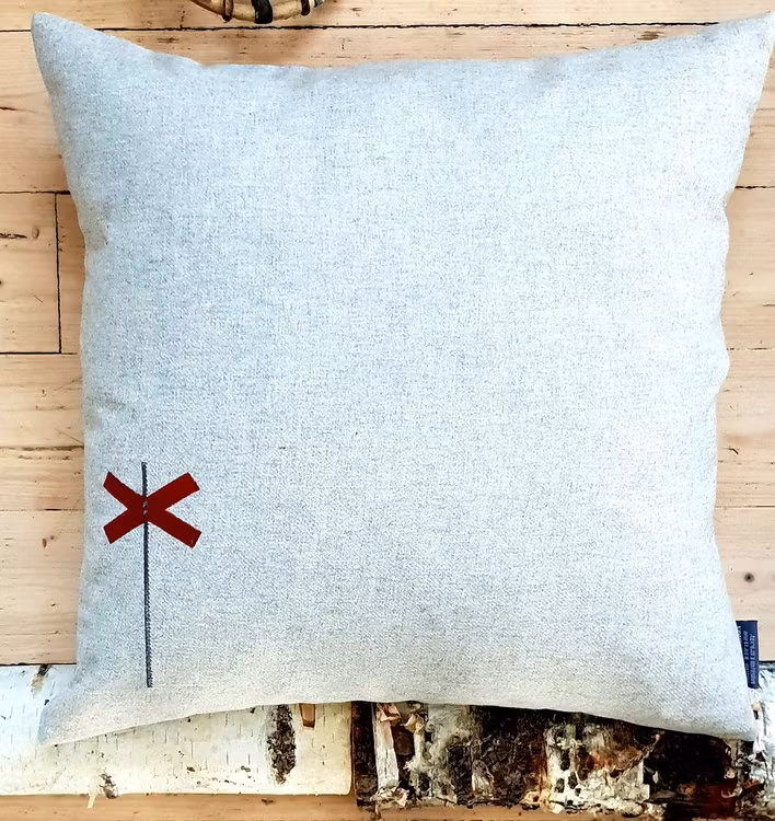 I lager. Antal: 53 Ledkrysskudde vänster 399 kr Lägg i korgen Ullkuddfodral med broderat ledkryss till vänster.Färg: Ljusgrått med rött ledkryss/ledkors.Storlek 50 x 50 cm.