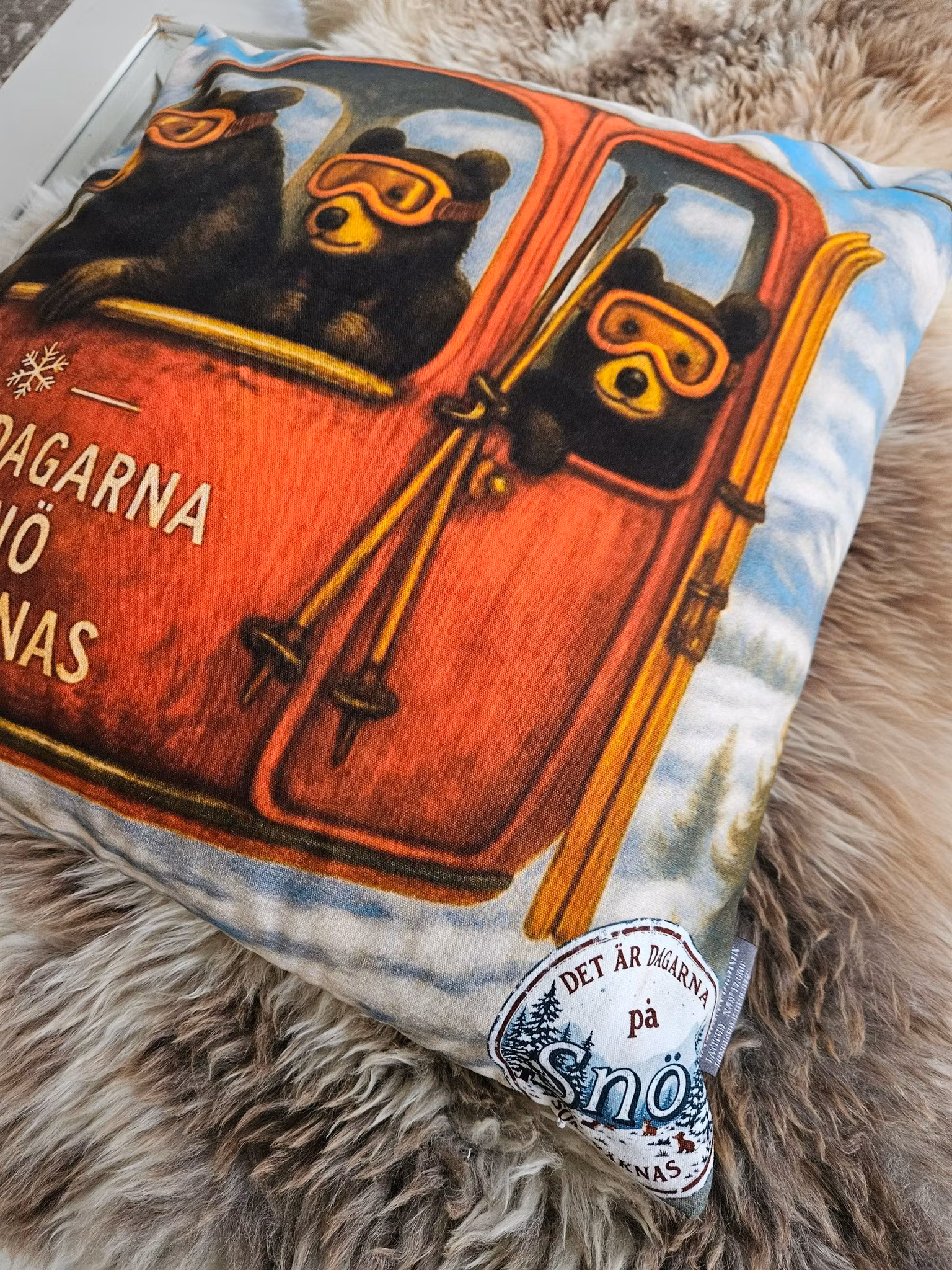 I lager. Skidbjörnar - kuddfodral 349 kr Lägg i korgen SkidbjörnarBjörnar som åker skidlift mot nya äventyr i skidbacken.Kudden påminner om det viktigaste - Det är dagarna på snö som räknas.Kuddfodral 45 x 45 cm i kraftig canvas.