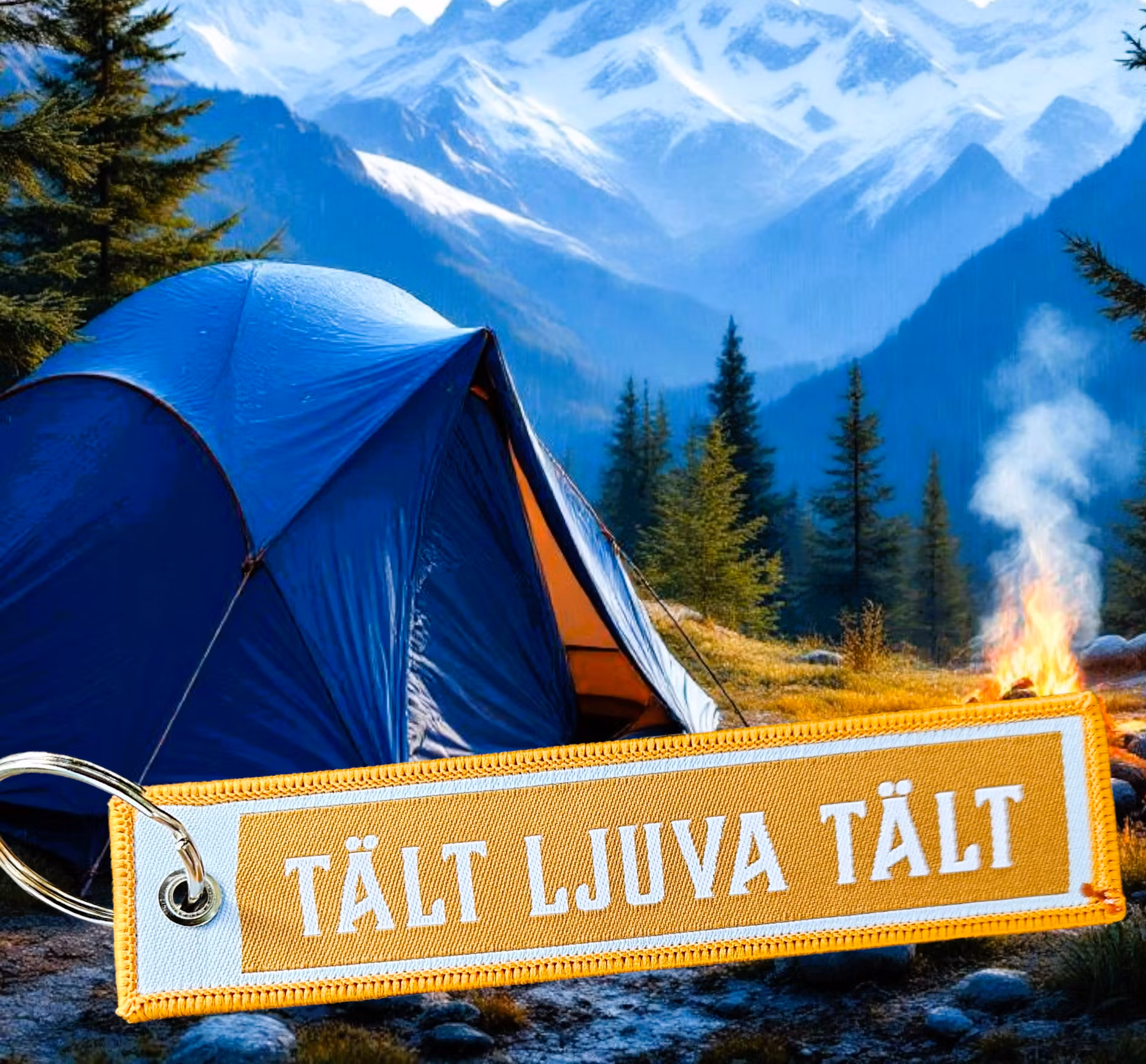 I lager. Antal: 95 Tält ljuva tält Nyckelring/Tag 69 kr Lägg i korgen Tält ljuva tältKraftig med dubbelsidig brodyr samt öljett och nyckelring. Längd: 12,5 cm bredd: 3 cm.