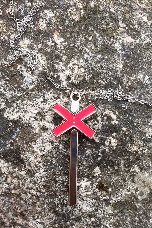 I lager. Ledkryssberlock med kedja 299 kr Lägg i korgen Ledkryssberlocken är gjord i mässing och målad för hand med kallemalj.Levereras tillsammans med 80 cm kedja,Berlocken mäter 4 cm på höjden.