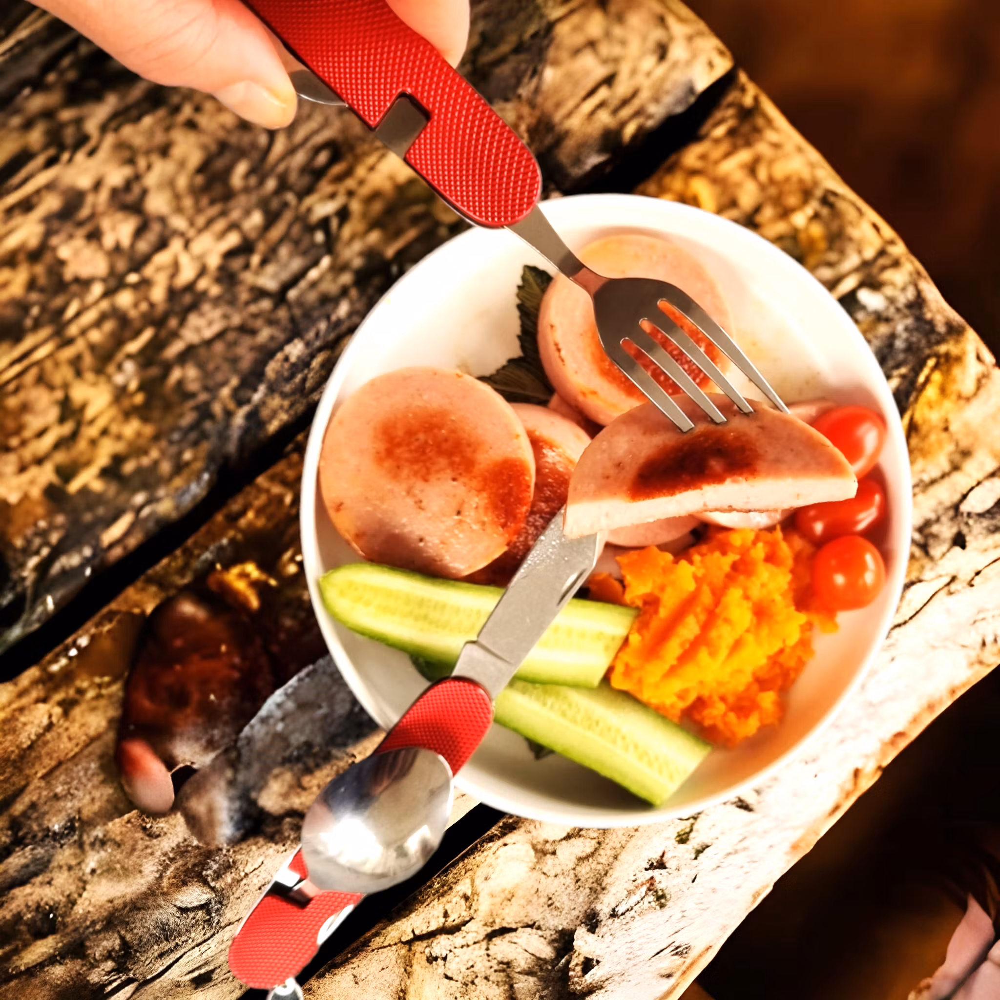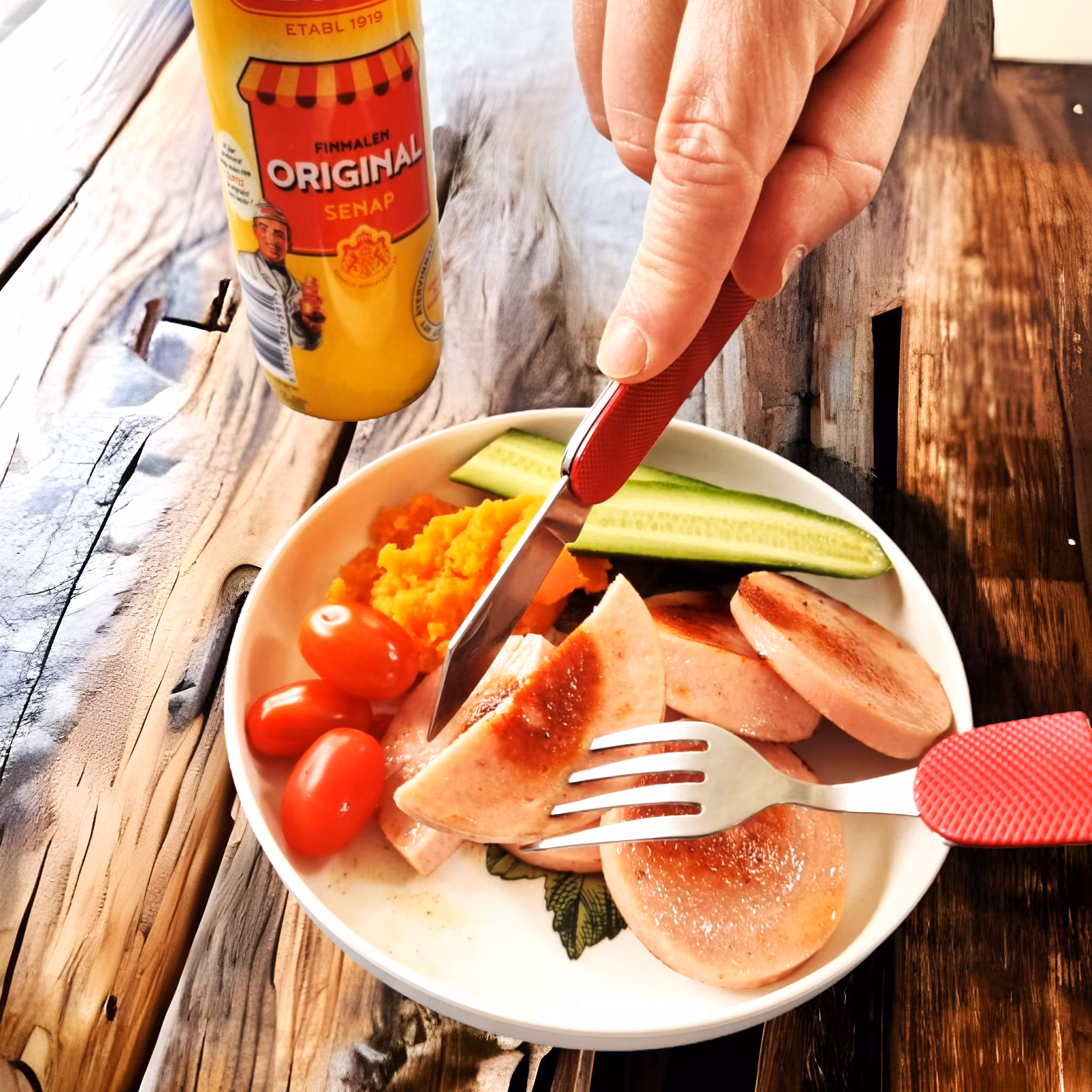 Besticket är smart delbart - vilket gör att du kan äta med kniven och gaffeln samtidigt.